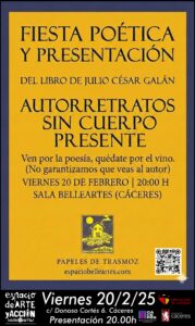 Espacio Belleartes, Cáceres, jueves 19 Febrero 2026 21.00h