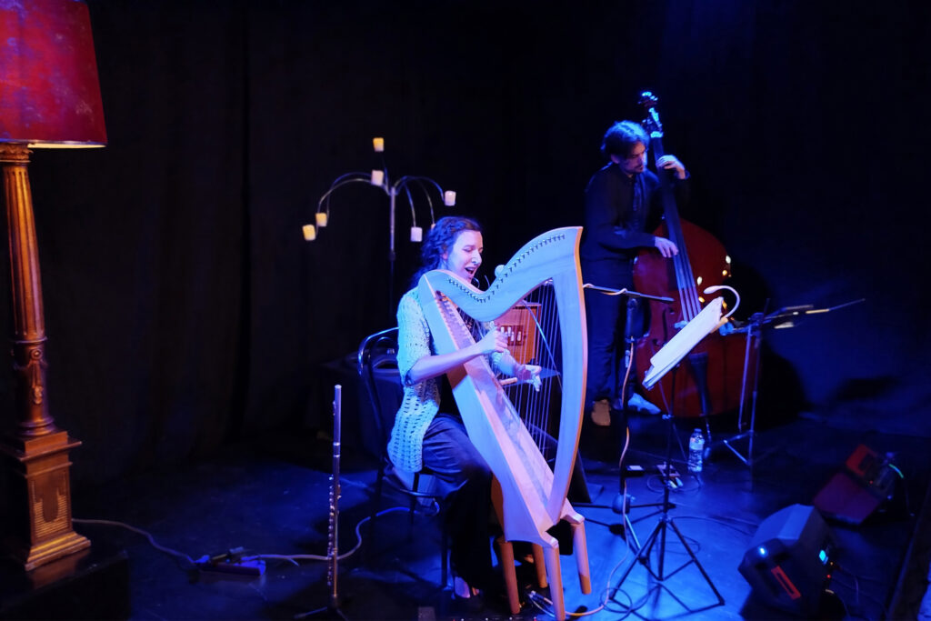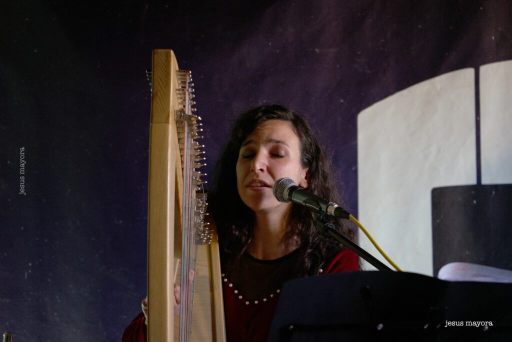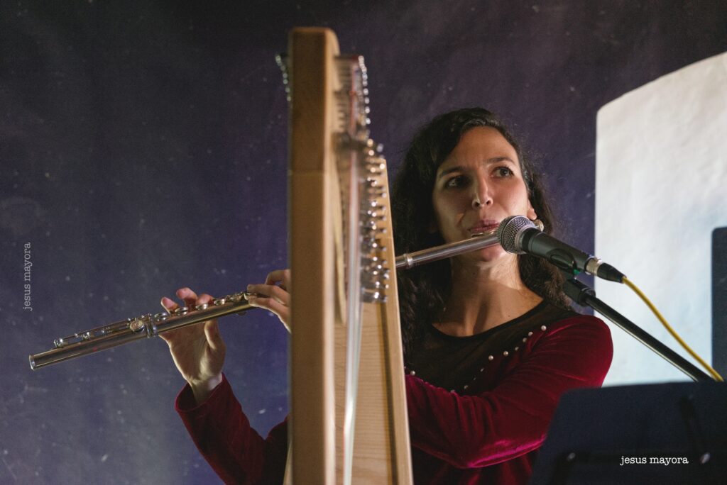 La voz —que combina técnica lírica con ornamentaciones de la música antigua y la tradición oral— dialoga con un set instrumental singular que incluye arpa celta, shruti box, flauta travesera, pandero cuadrado y contrabajo, creando un puente entre lo ancestral y lo contemporáneo.