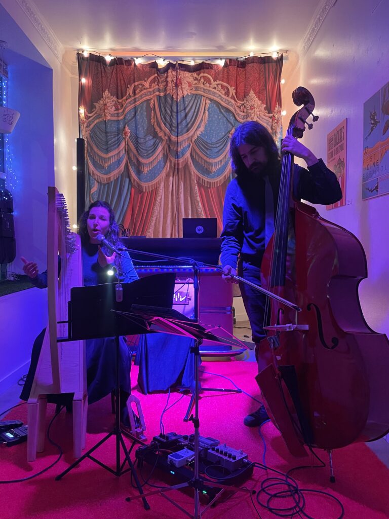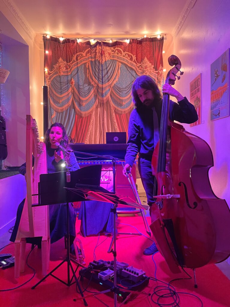 La voz —que combina técnica lírica con ornamentaciones de la música antigua y la tradición oral— dialoga con un set instrumental singular que incluye arpa celta, shruti box, flauta travesera, pandero cuadrado y contrabajo, creando un puente entre lo ancestral y lo contemporáneo.