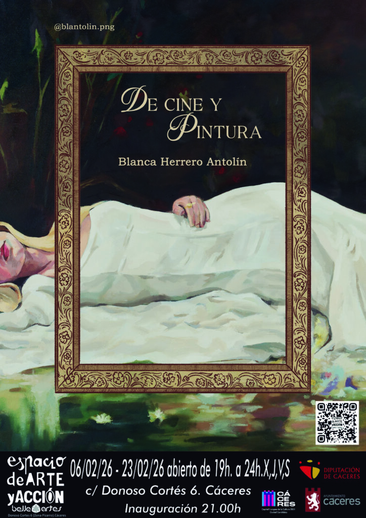 SalaBe de Espacio Belle Artes Cáceres (calle Donoso Cortés, 6) y se podrá visitar del Viernes 06 al 23 Febrero de 2026, en horario de 19:00h a 24:00h de jueves a sábados.